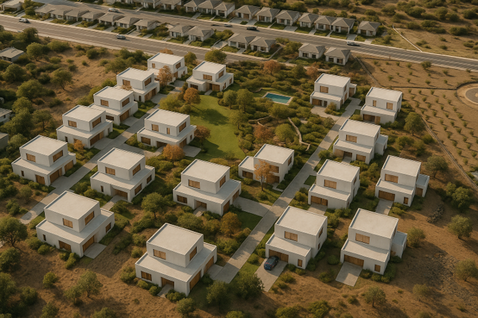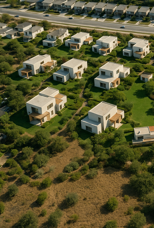 Emplazado en un terreno de 21.591 m², el proyecto contempla dos alternativas de desarrollo residencial, ambas en conformidad con la normativa vigente: un condominio de 27 casas unifamiliares de entre 220 y 340 m², o una propuesta más exclusiva de 14 casas de aproximadamente 640 m², con amplios terrenos privados y áreas verdes comunes.